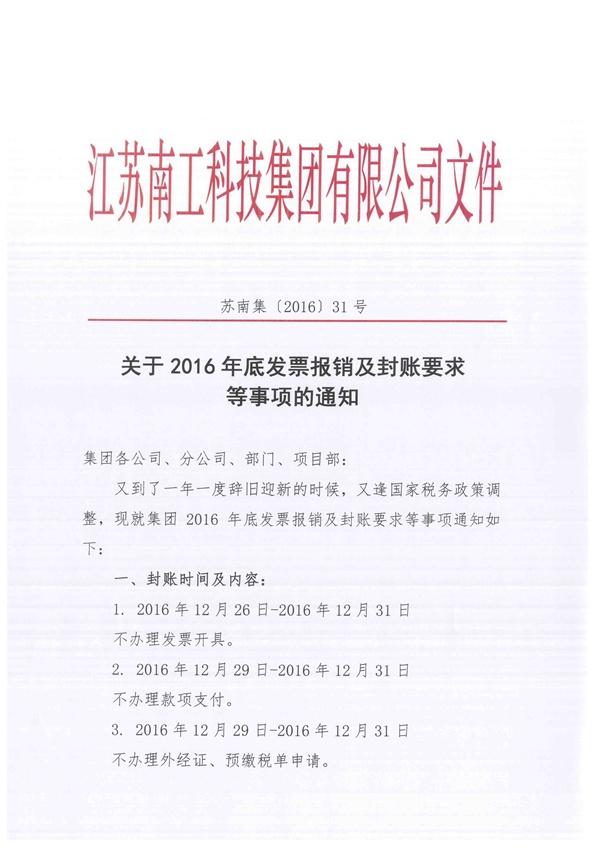 关于2016年底发票报销及封账要求等事项的通知