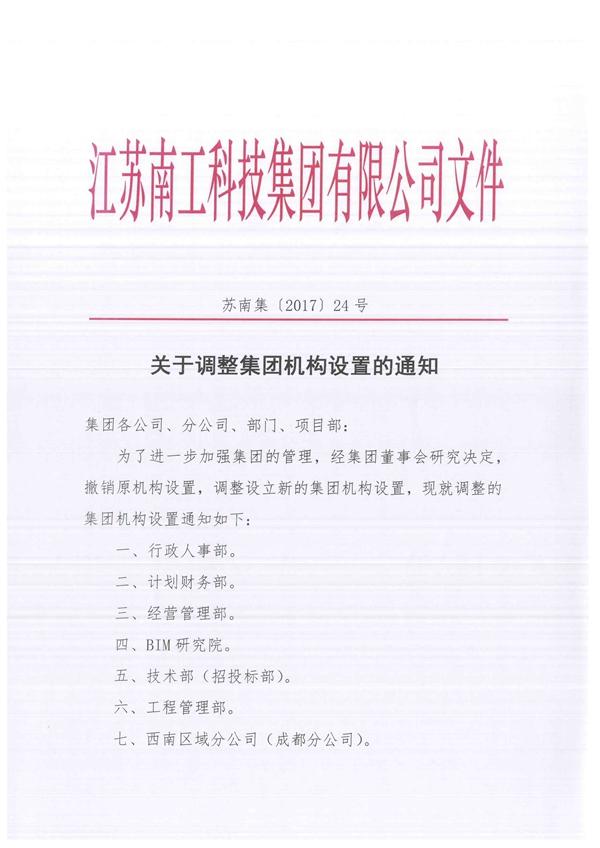 关于调整集团机构设置的通知
