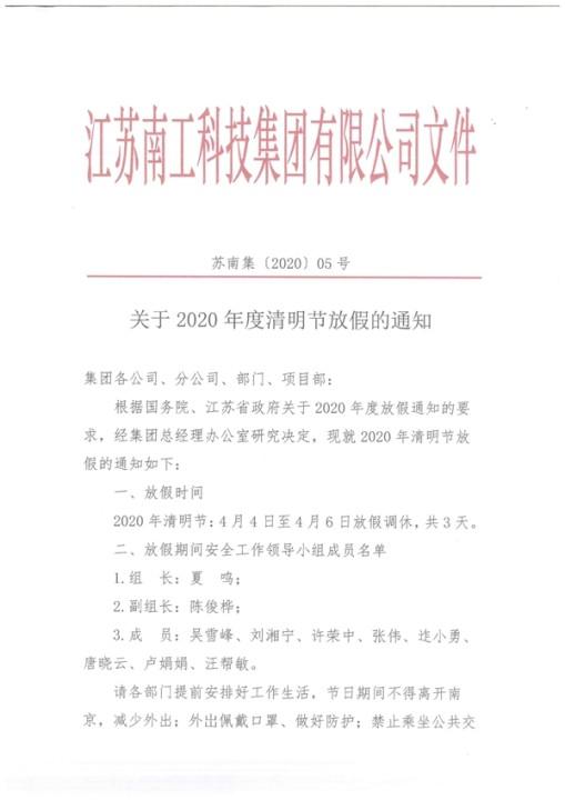 您的位置:集团首页 >> 新闻中心 >> 集团公告 >> 关于2020年度清明节放假的通知
