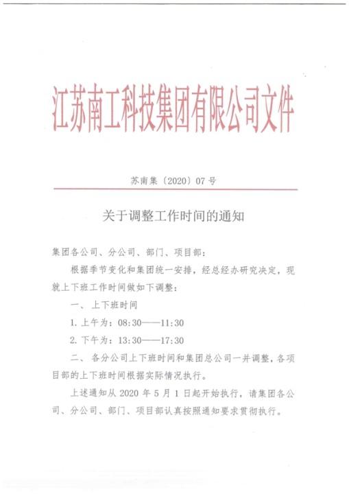 关于调整工作时间的通知