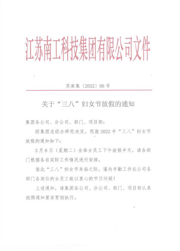 关于“三八”妇女节放假的通知