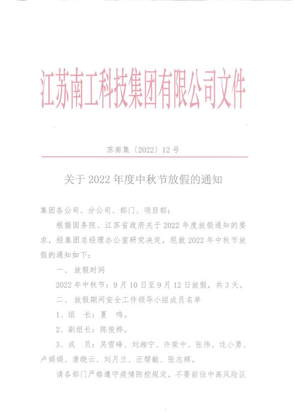 您的位置:集团首页 >> 新闻中心 >> 集团公告 >> 关于2022年度中秋节放假的通知