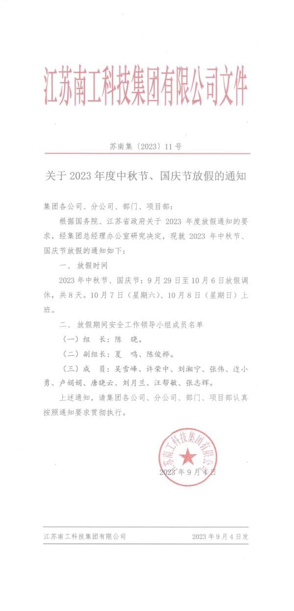 您的位置:集团首页 >> 新闻中心 >> 集团公告 >> 关于2023年度中秋、国庆节放假的通知