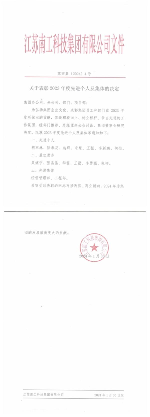 您的位置:集团首页 >> 新闻中心 >> 集团公告 >> 关于表彰2023年度先进个人及集体的决定