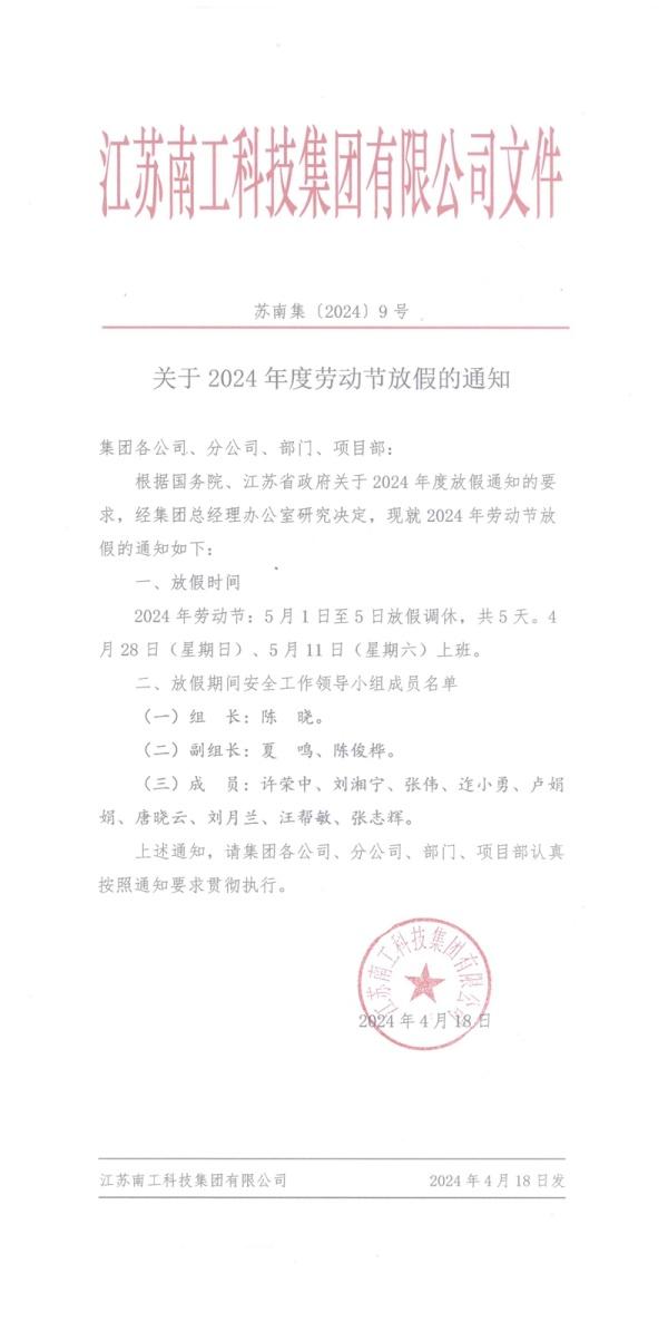 您的位置:集团首页 >> 新闻中心 >> 集团公告 >> 关于2024年度劳动节放假的通知