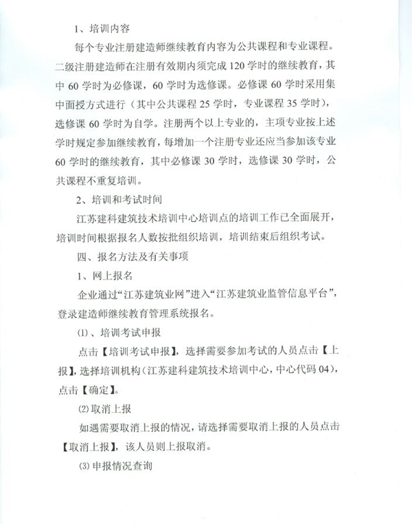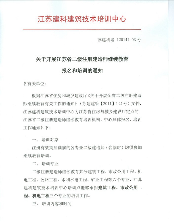 关于开展江苏省二级注册建造师继续教育报名和培训的通知