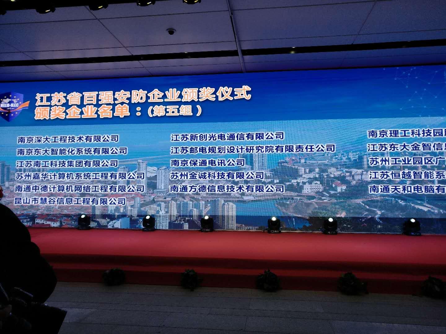 2017年12月12日,江苏省百强安防企业颁奖仪式在“连云港论坛暨警用装备和公共安全产品博览会”现场举行。参加会议的有原公安部科技信息局副局长牛晋,南京安全技术防范行业协会秘书长张亚忠、副秘书长查雪松,南京安全技术防范行业协会副理事长、江苏太阳成集团tyc122cc入口科技集团执行董事陈俊桦等300多人。陈俊桦执行董事参加了颁奖活动,并代表江苏太阳成集团tyc122cc入口科技集团有限公司领取了“江苏省百强安防企业”奖状。