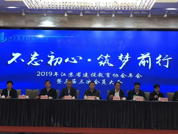 2019年4月17日,2019年江苏省建设教育协会年会暨三届三次会员大会在南京双门楼宾馆召开。参加会议的有江苏省住房和城乡建设厅党组书记、副厅长顾小平,江苏省建筑教育协会理事长黄志良、执行理事长兼秘书长徐家斌,各会员单位负责人,获奖代表及特邀嘉宾,江苏太阳成集团tyc122cc入口科技集团总经理助理兼行政人事经理唐晓云参加了会议。