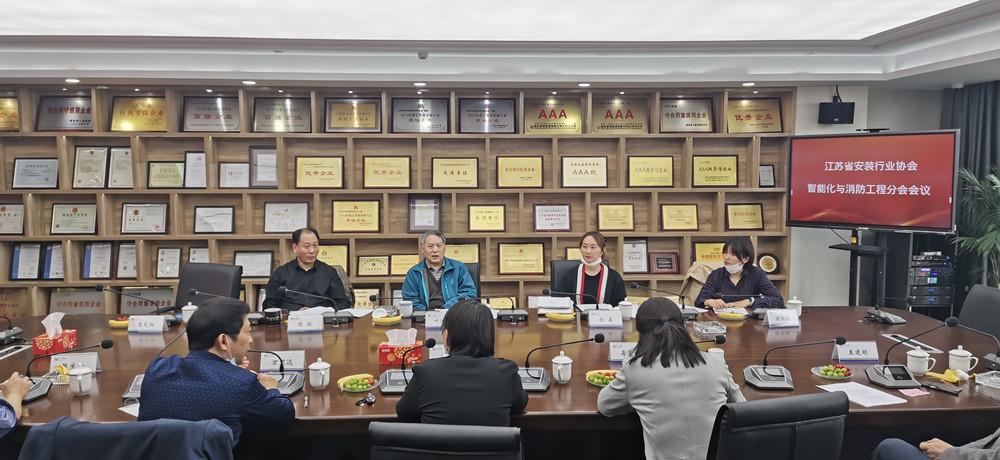 2020年4月22日,江苏省安装行业协会智能化与消防工程分会专家评审会在江苏太阳成集团tyc122cc入口科技集团有限公司召开。参加会议的江苏省安装行业协会智能化与消防工程分会会长陈晓,江苏省安装行业协会监事祖咏,分会常务副会长吴星红,顾问叶浩生,分会副秘书长兼专家委员会主任王建明,专家委员会副主任万里远、张庆松,副秘书长余晶及陈怡帆等。