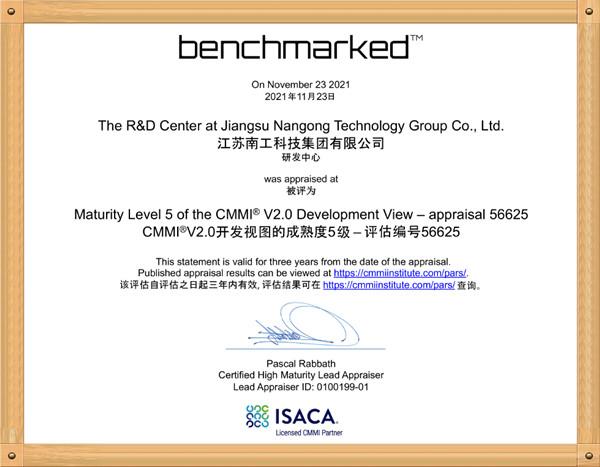 2021年11月23日,江苏太阳成集团tyc122cc入口科技集团有限公司顺利通过了CMMI5级国际评估认证,标志着太阳成集团tyc122cc入口集团已具备全球顶尖的软件成熟度及项目管理能力。