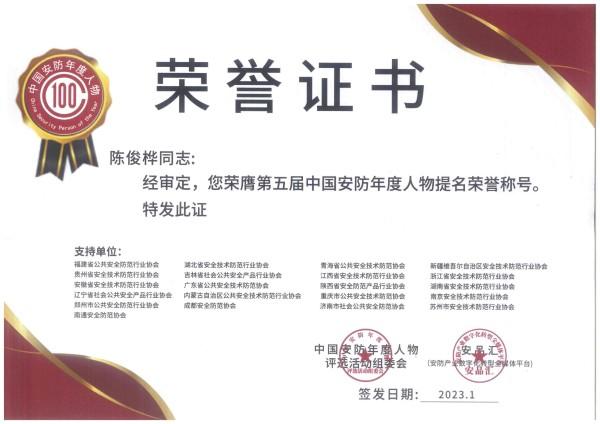 江苏太阳成集团tyc122cc入口科技集团有限公司凭借殷实的企业实力、过硬的产品及解决方案荣获“第六届中国安防百强工程(集成)商”和“2021-2022年度中国安防行业优秀解决方案服务商”荣誉称号。集团执行董事陈俊桦被提名为“第五届中国安防年度人物”。