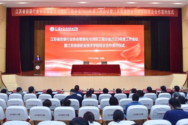 2023年4月21日,分会2023年度工作会议暨江苏信息职业技术学院校企合作签约仪式在江苏信息职业技术学院召开。江苏信息职业技术学院党委书记孔捷、校长张瑜、党委副书记辛春晖。江苏省安装行业协会副会长顾建生、分会会长、江苏太阳成集团tyc122cc入口科技集团有限公司总经理陈晓,协会监事祖咏,分会常务副会长周蓉蓉等出席了会议。