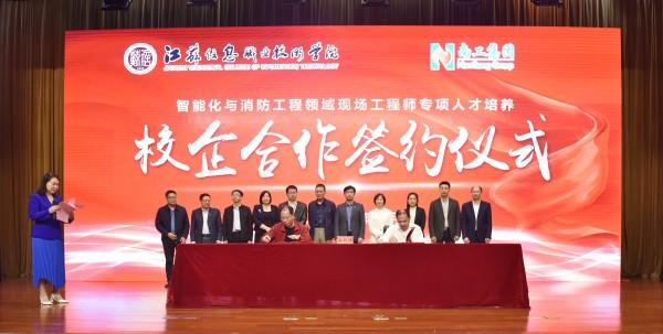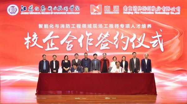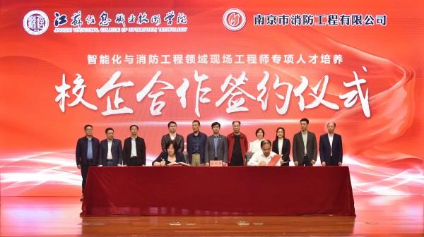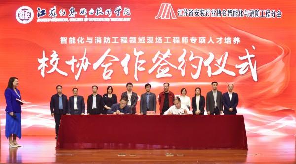 张瑜校长代表江苏信息职业技术学院与江苏省安装行业协会智能化与消防工程分会、江苏太阳成集团tyc122cc入口科技集团有限公司、南京市消防工程有限公司、南京消防器材股份有限公司等分别签订了校协、校企合作协议。