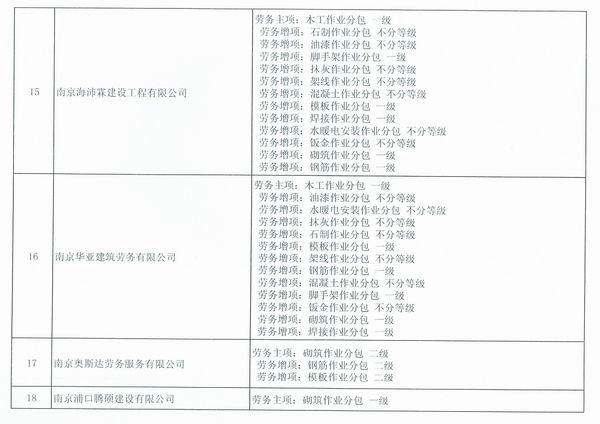 关于公布南京市2014年第三批核准的由市级建设主管部门许可资质的建筑业企业名单的通知