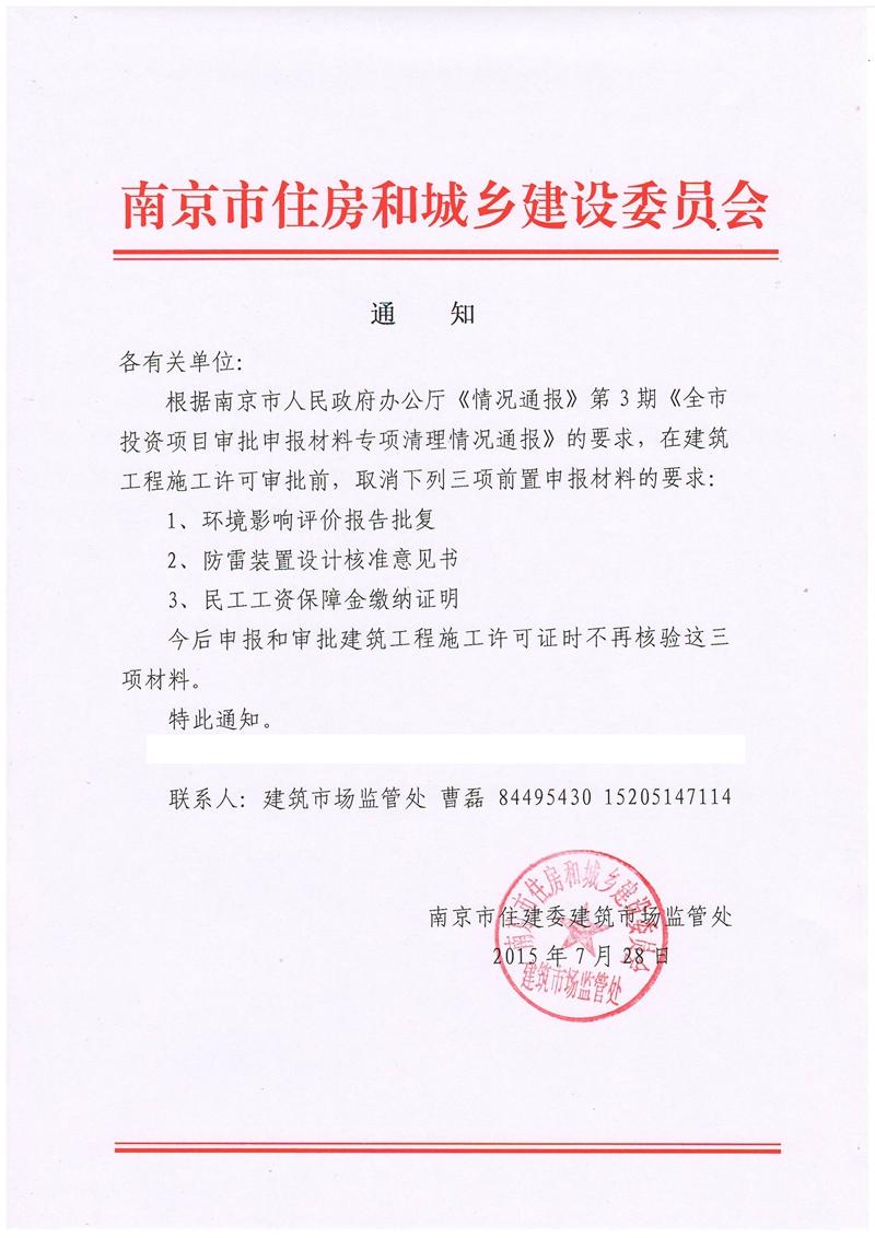 关于简化施工许可审批事项的通知