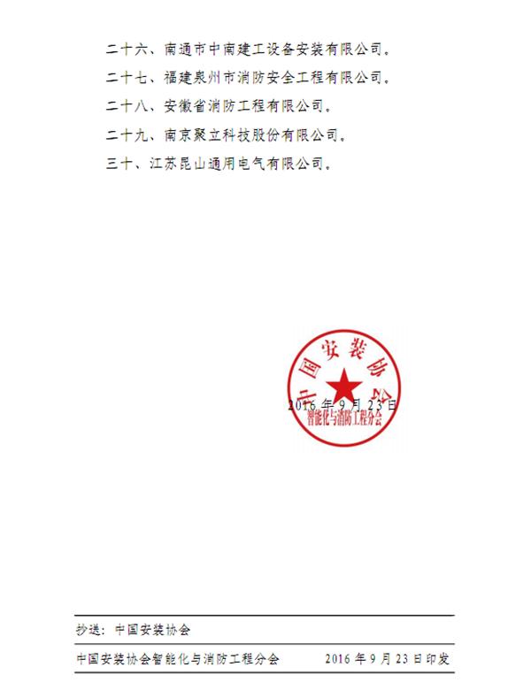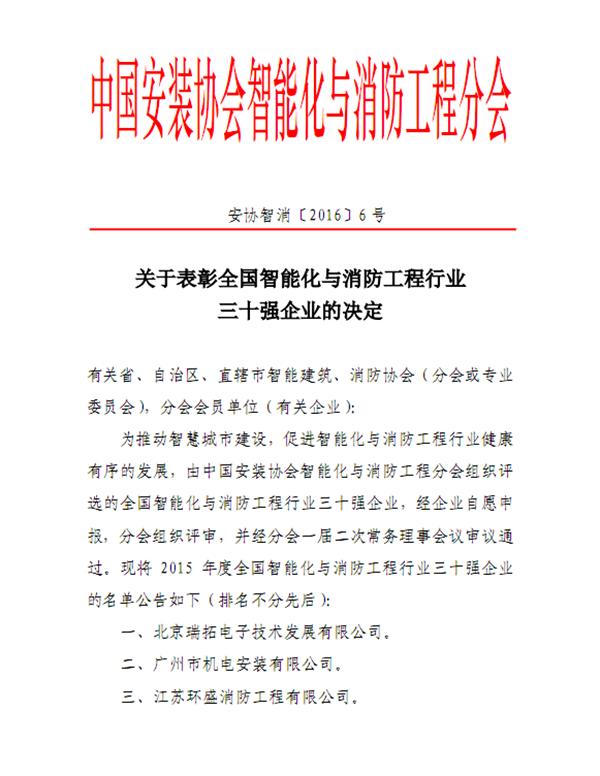 关于表彰全国智能化与消防工程行业三十强企业的决定
