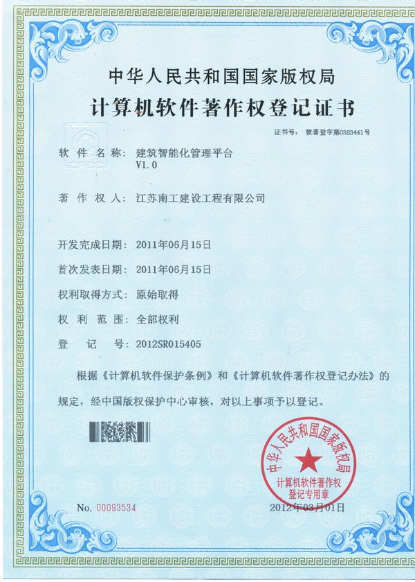 建筑智能化管理平台证书