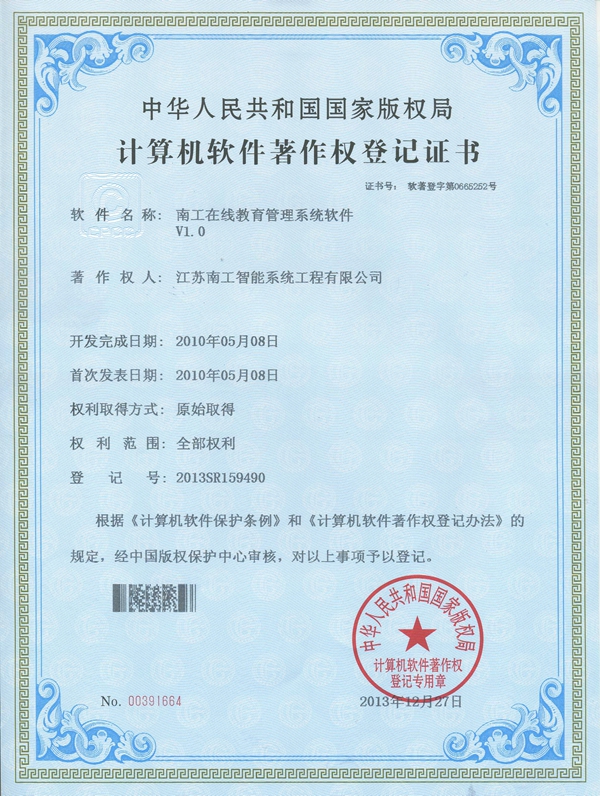 太阳成集团tyc122cc入口在线教育管理系统软件证书