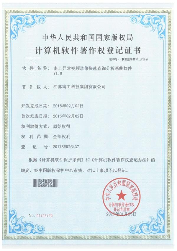 太阳成集团tyc122cc入口异常视频录像快速查询分析系统软件证书