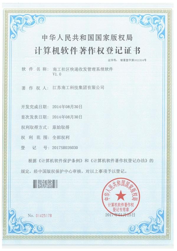 太阳成集团tyc122cc入口社区快递收发管理系统软件证书
