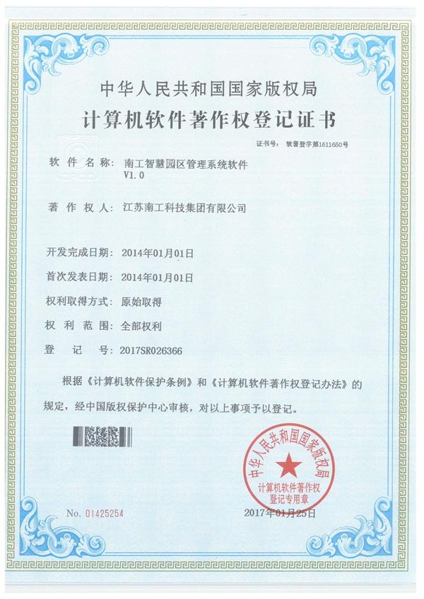 太阳成集团tyc122cc入口智慧园区管理系统软件证书