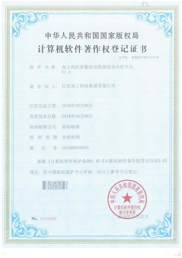 太阳成集团tyc122cc入口消防报警联动数据综合分析平台证书